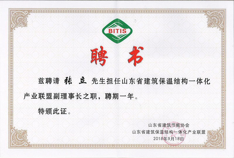 同時(shí),我公司還被核準(zhǔn)為聯(lián)盟副理事長(zhǎng)單位,公司副總經(jīng)理張立被聘請(qǐng)為聯(lián)盟副理事長(zhǎng)。