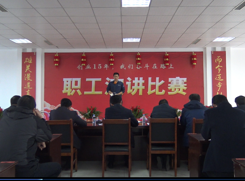 2019年2月28日,“創(chuàng)業(yè)15年,我們奮斗在路上”職工演講比賽在公司五樓會(huì)議室舉行。公司董事長、總經(jīng)理王曉軍和班子成員及職工代表共計(jì)100余人現(xiàn)場(chǎng)觀看比賽。