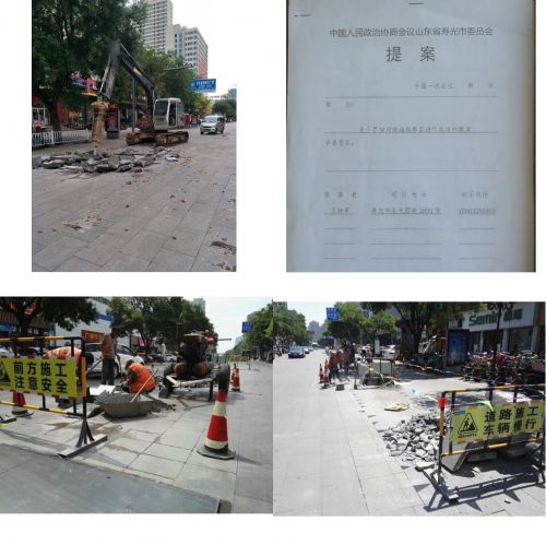 2004年,壽光市對渤海路進行了高標(biāo)準(zhǔn)改造,將渤海路中段改建成集休閑、娛樂、購物、交通于一體的現(xiàn)代化商業(yè)步行街。但之前因服役時間長,渤海路損壞嚴(yán)重,連年“縫縫補補”不斷,影響了市民生活和出行,也制約著周圍商業(yè)的發(fā)展。多年來,擁有“政協(xié)委員”和“修路人”雙重身份的王曉軍,持續(xù)關(guān)注著這一問題,并于2018年完成了《關(guān)于盡快對渤海路路面進行改造的提案》,令他高興地是,這一提案很快通過并實施。2018年10月9日,渤海路改造升級工程由市政公司競標(biāo)成功,在王曉軍帶隊下,渤海路開始了“精雕細琢”的“變身”。