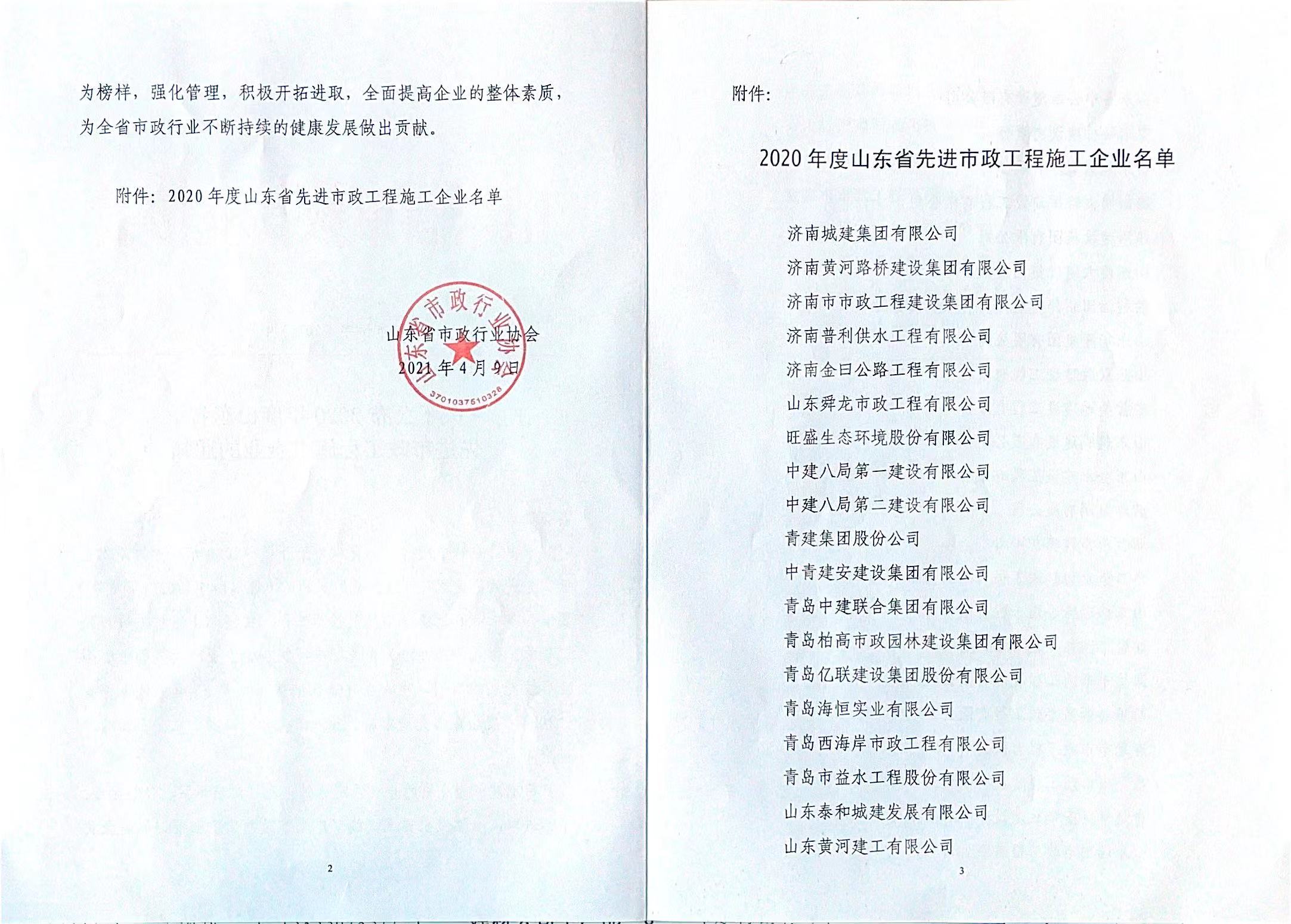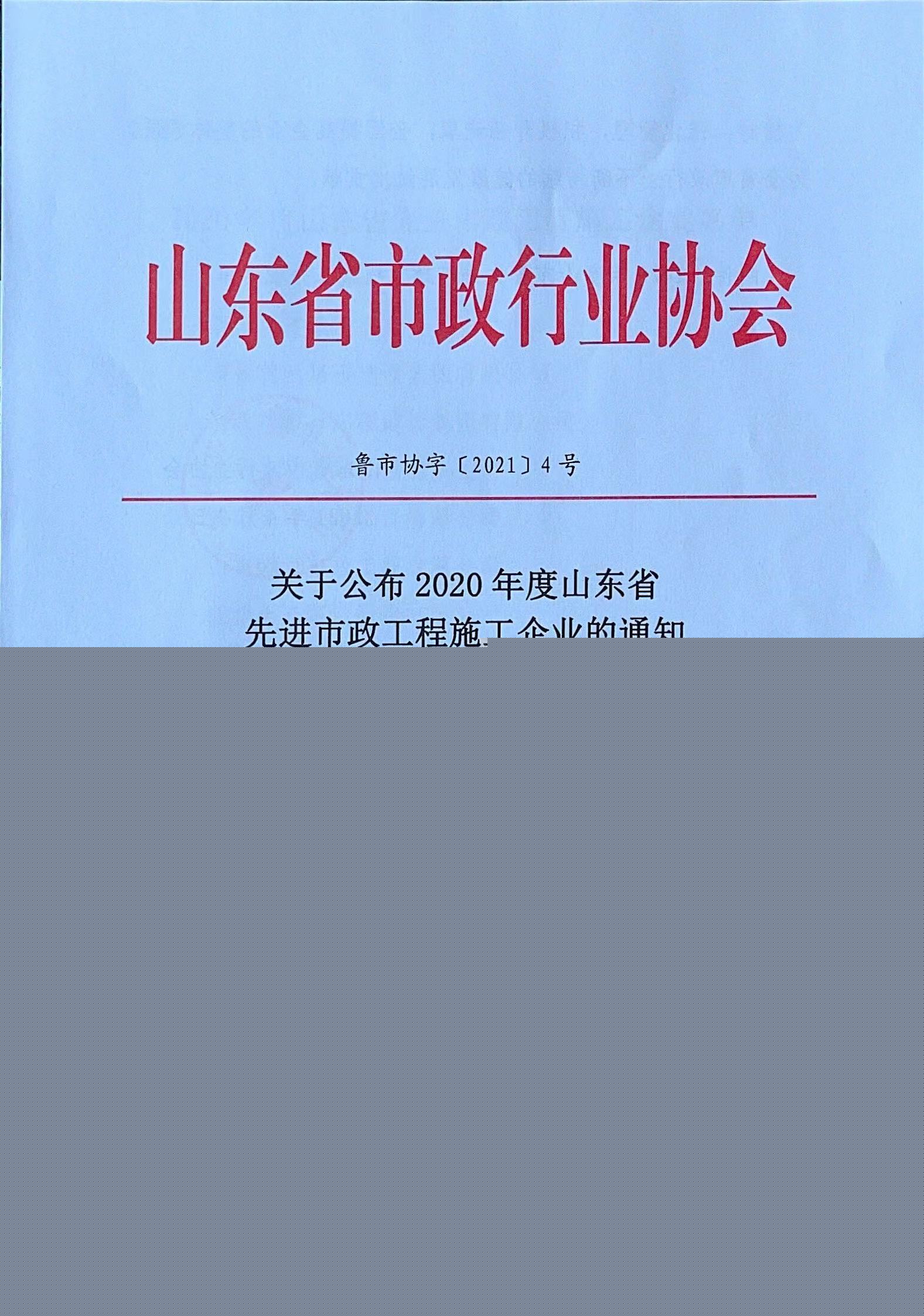 日前,2020年度山東省**市政工程施工企業(yè)名單公布,我公司等55家單位榜上有名。 此次評選,是山東省市政行業(yè)協(xié)會根據(jù)《山東省**市政工程施工企業(yè)評選辦法》相關標準,結合企業(yè)業(yè)績及鼓勵中小企業(yè)盡快發(fā)展的原則組織進行的,三年一屆。隨著此次山東省**市政工程施工企業(yè)榮譽的獲得,我公司自企業(yè)改制以來,獲得的市政行業(yè)同類省級殊榮已增至5項。